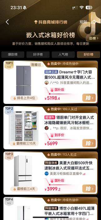 隨著雙十二購物節收官,各品類榜單成為洞察消費趨勢的重要窗口。今年,抖音商城“嵌入式冰箱好價榜”的榜首易主,尤為引人注目――追覓旗下的“多巴胺冰箱”系列突破重圍,成功登頂。