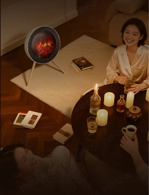 主推的篝火暖風機堪稱“氛圍感制造機”:傳承B&O音響經典簡約造型,仿布紋機身搭配仿木紋腳架,觸感溫潤高級;超寬闊圓形全面屏搭載3D炭火壁爐特效,動感火苗逼真靈動,即便不制熱,單開炭火屏也像把北歐森林的篝火搬進客廳,瞬間拉滿治愈氛圍。更難得的是,機身采用取暖系統濃縮技術,正面精致、側面纖薄,輕巧不占空間,臥室、書房提挪隨心。