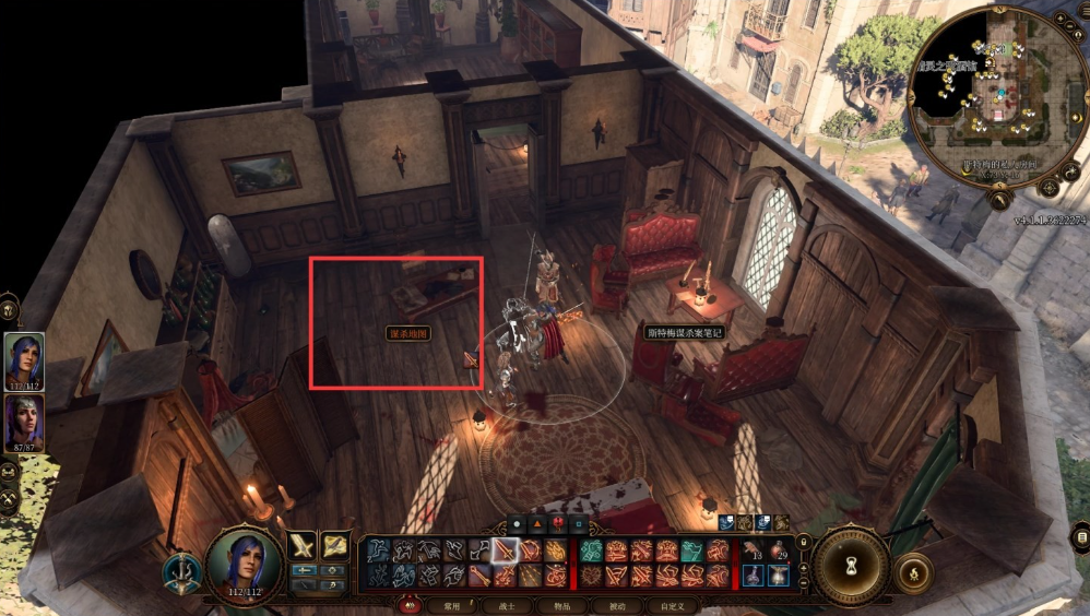 2.然后我們從酒館內部右側樓梯上到二樓,進入房間觸發調查謀殺案的劇情(得到任務道具 “謀殺地圖”),打開大地圖可以在地圖上看到一個任務標點。