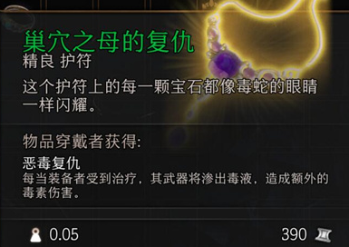 當穿戴者獲得治療時武器就會蘸毒造成額外的毒素傷害。