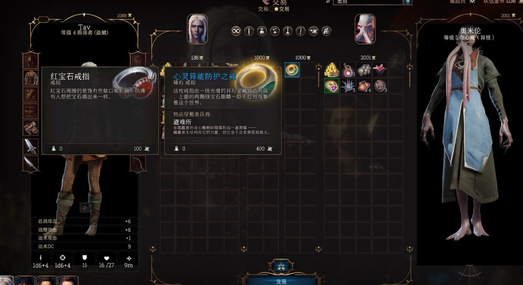4、同時奧米倫為表歉意會以1000金幣的價格將他的心靈異能防護戒指賣給我們。