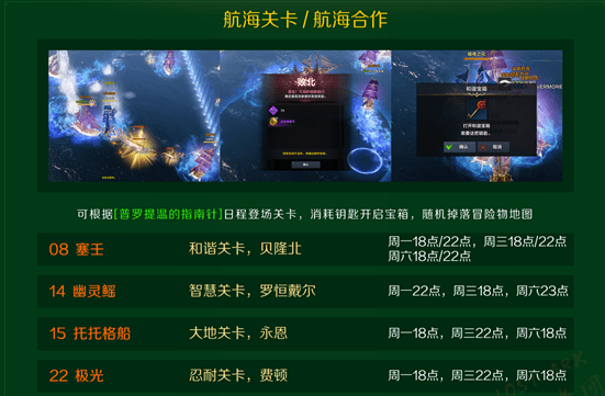4、參加航海合作獲得,收集鑰匙,參加航海關(guān)卡,打開寶箱獲得冒險物地圖。