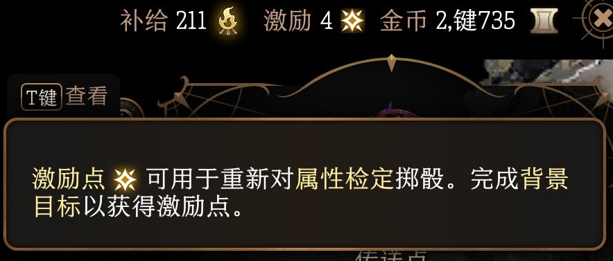 激勵系統,當做出符合人物背景人設的選擇時(平民英雄見義勇為/騙子把敵人騙得團團轉),會獲得1點激勵點數,最多能存儲4點