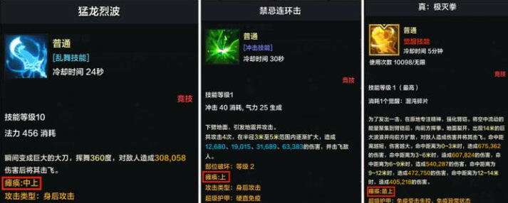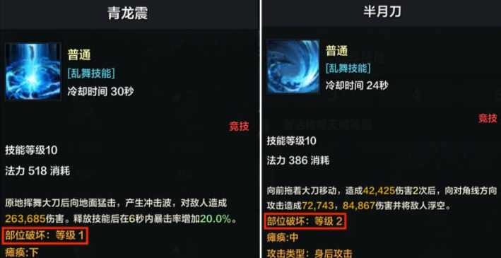 部位破壞效果以數字等級分為1—5共5個級別,與技能本身等級和傷害無關,部位破壞效果只和效果等級掛鉤,等級越高效果越強。