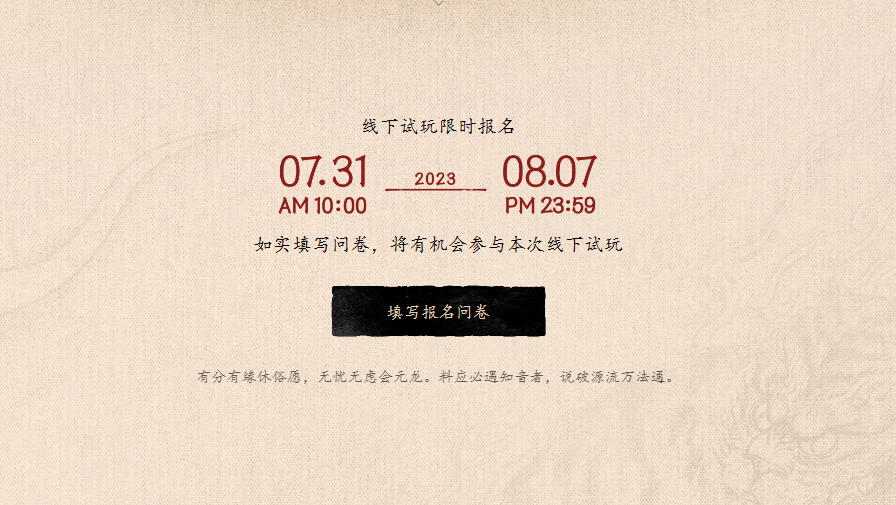 ※ 報名時間截止后,所有獲得試玩資格的用戶,我們將陸續通過短信和郵箱發放中選通知,并告知如何參與試玩活動的詳細信息。試玩資格與手機號碼綁定,請及時留意并保管您接收到的信息,勿與他人分享。