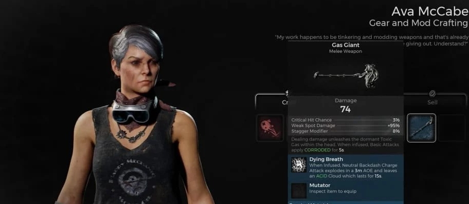 內(nèi)置改裝【瀕死之息】:注入后,普通后閃蓄力攻擊會發(fā)生爆炸,造成3米的群體傷害,并留下一團持續(xù)15秒的強酸云。