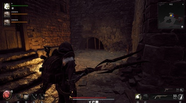 鐵區里會有這種中間欄桿存在大縫隙的下水道入口,我是在圖上位置遇到的。走近下水道口后會觸發一只白色變異怪物將你KO。醒來會發現進入了一個隱藏區域,在這里干掉boss后會撿到賢者之石,就可以拿去開煉金術士啦。