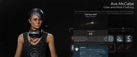 內置改裝【生命線】:造成250點傷害后,下一次蓄力攻擊會召喚出紅鹿之靈向前沖鋒,對敵人造成160點傷害,使盟友回復10%生命。