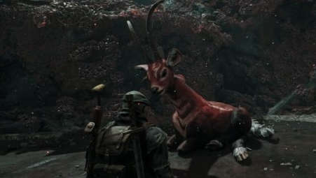 靠近紅鹿,使用1次圣物充能來拯救紅鹿,然后觸發過場動畫并與【腐敗劫掠者】的戰斗,擊敗【腐敗劫掠者】后可以獲得【紅鹿鹿角】。