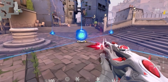 但需要注意這個圓盤不會阻隔子彈。中心和四角的圓球均可受到傷害被打掉,圓盤剛展開時會更快的被打掉,類似于奶媽的冰墻。大部分投擲型的技能都可以穿過此屏障,例如雷茲的雷,機K/O的閃,還有獵梟的箭。