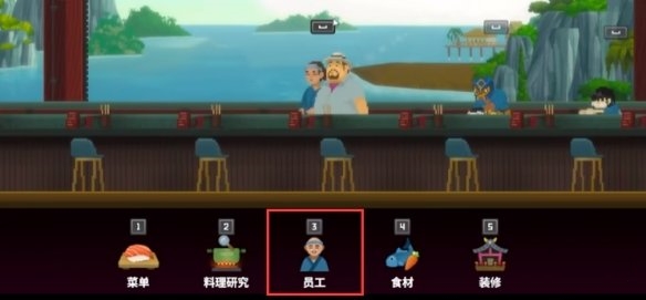 員工是主線任務會解鎖的,一直做壽司店的任務就能解鎖了。