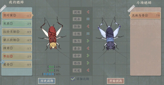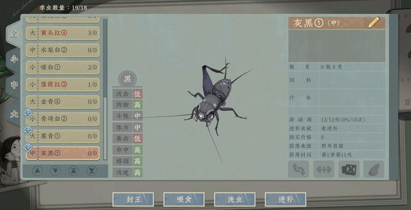 而在經歷過幾個小時的游戲后,我們就大概也會成為一名職業的馭蟲大師了。或許你會覺得這很麻煩,但是經歷過游戲具體數據化之后,這已經比現實中的選蛐蛐強大的太多了。