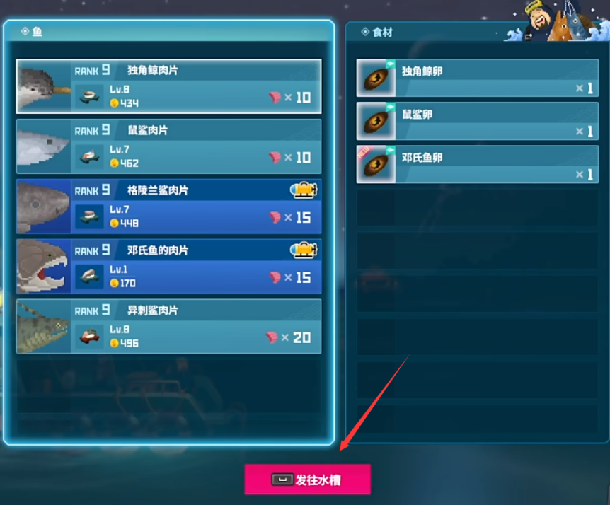 1、在潛水回來之后,我們有幾率獲得魚卵,只能選擇將它發送到水槽。