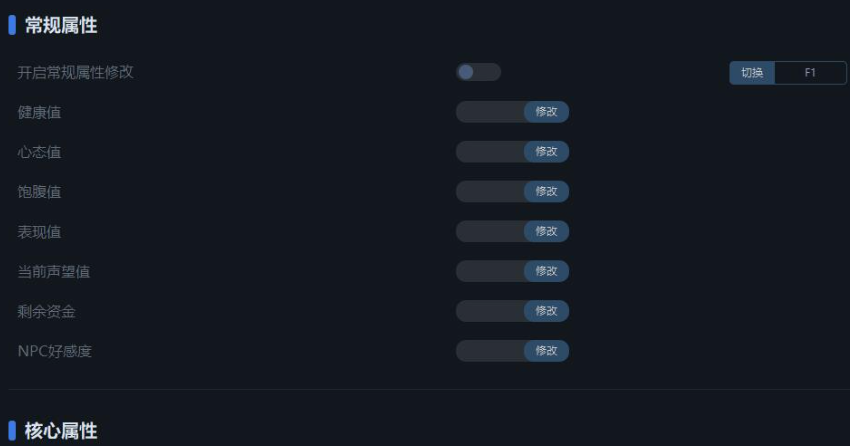 F2:開啟核心屬性修改