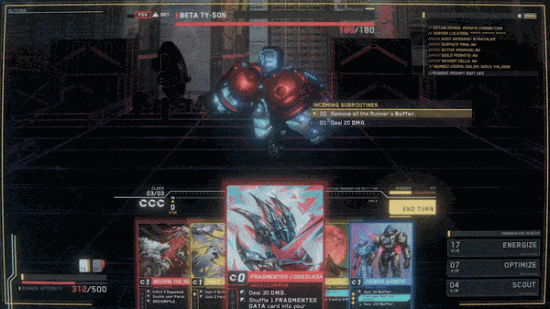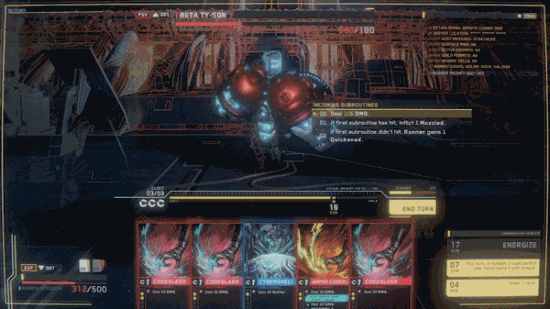 我們設計了獨特的雙資源系統,每張卡牌在打出時不僅會觸發自身的效果,同時也會生成虛擬內存(VIM),這讓玩家可以利用好哪怕最糟糕的手牌。使用你的VIM在戰斗中激活你的各種指令,摧毀敵人的防御吧!