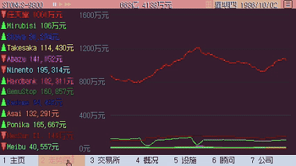 歡迎使用STONKS-9800電子交易系統,該系統授予認證個人實時交易、資產管理和實驗性市場分析的權限。您能在這個時候加入我們無疑證明了您的眼光!專家們都認為這是日本股市的黃金年代!您看這強勁的曲線,只要您有資本,在這個風口就連豬也能吹上天!