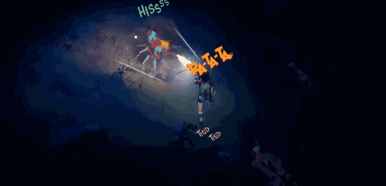 而這就使得“擬聲詞”作為一種聲音的視覺化表現元素,一方面在功能上作為一種相當好用的提醒道具;而在另一方面,無時不刻都在彈出的“擬聲詞”又會讓玩家更加注意環境中的聲音要素,加劇了玩家在游玩時的緊張感,從而為游戲帶來更具沉浸感的驚悚游玩體驗。