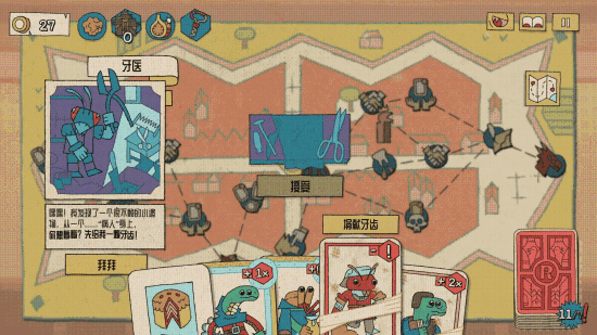 中世紀手繪風格將戰爭的舞臺描寫地栩栩如生,即便友軍和敵人都只是用卡牌的方式展現,但戰斗時敵人的每一個動作身影都惟妙惟肖。不一樣狀態的卡牌也會有不一樣的展示效果,受傷后的一瘸一拐,大難臨頭時的瑟瑟發抖,還有勝利后的高興喜悅,都讓這場戰斗有了更強的帶入感。