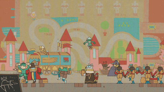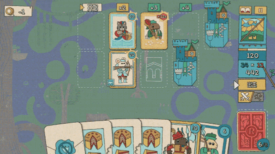 在這款游戲中,你將統領一支由國王精心挑選的軍隊,他們有“虛弱的火烈鳥”、“近視的雞弓箭手”這樣的奇怪角色,他們的指令只有前進,在國王的旨意下沖向敵人的哨塔。一旦陷入敵陣或失去戰力,他們就是永久殞命,在牌組中消失。當然,這只是戰斗中的一點必要的小代價!